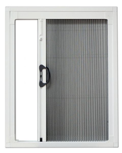 - single (up to 180 cm wide, closing from left or right side), or double (up to 350 cm wide, closing towards the centre) pleated insect screen